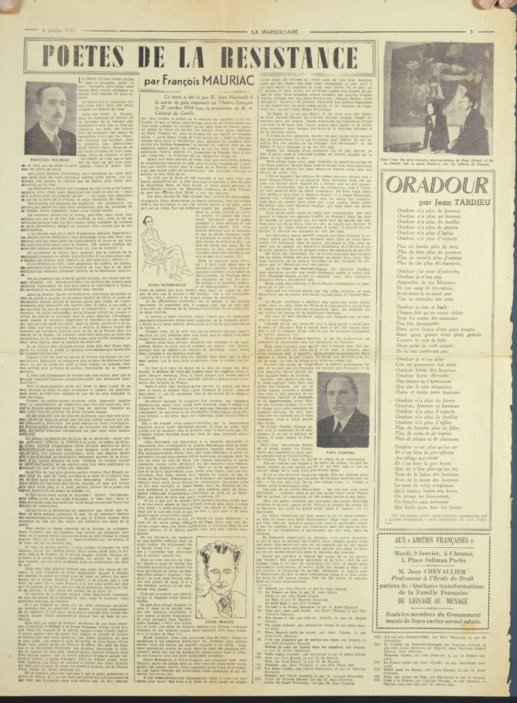 Απόκομμα της εφημερίδας “La Marsillaise”, στα γαλλικά, χαρτί, δύο όψεις. Στο ίδιο απόκομμα: “La confidence du “Tommy”.