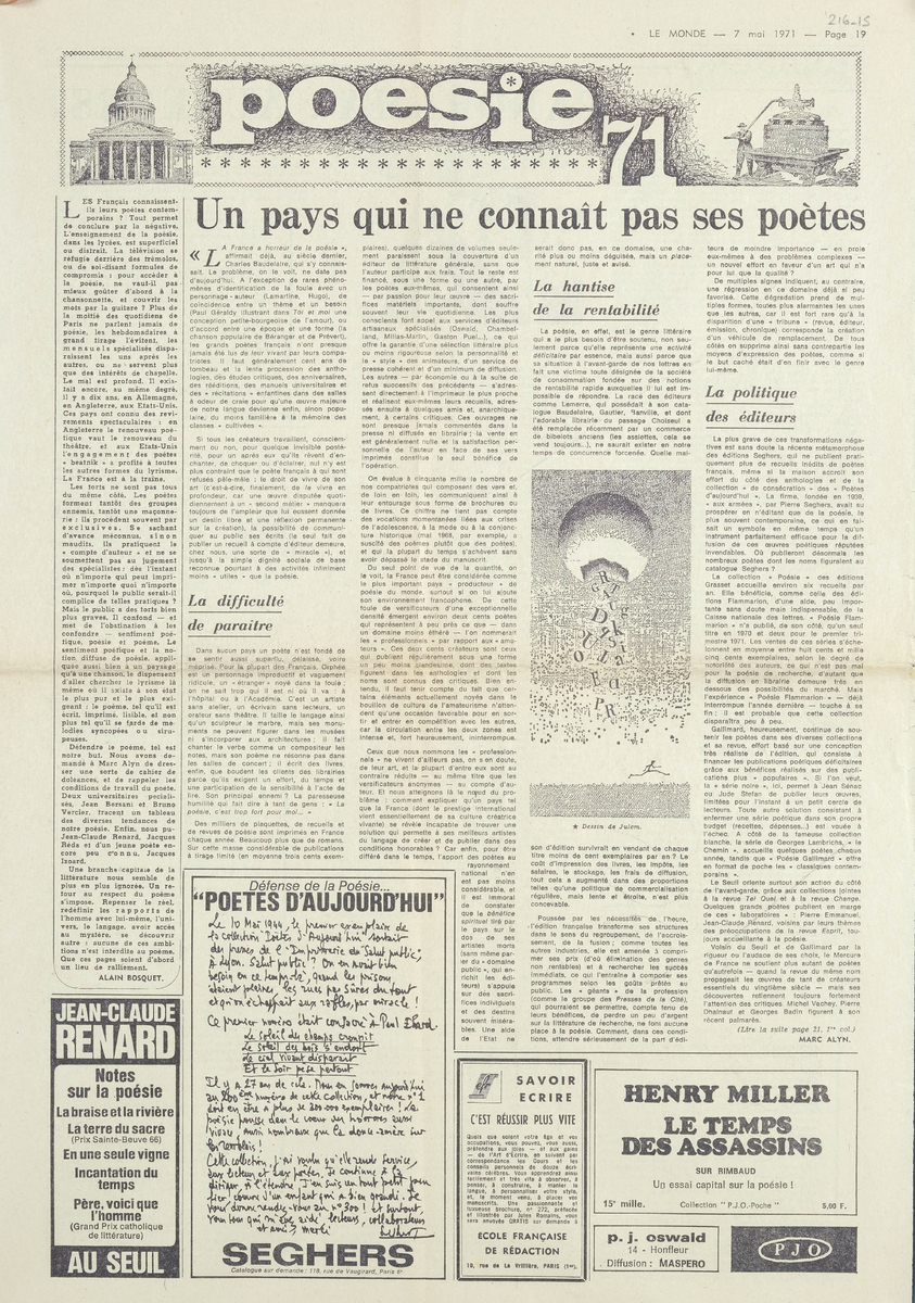 Απόκομμα της εφημερίδας “Le Monde”, στα γαλλικά, χαρτί, 4 όψεις.