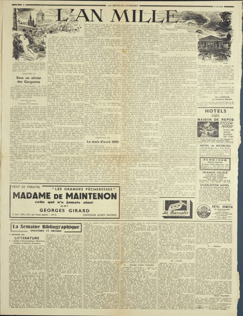 Απόκομμα της εφημερίδας “Les Nouvelles Litteraires”, στα γαλλικά, χαρτί, 2 όψεις.