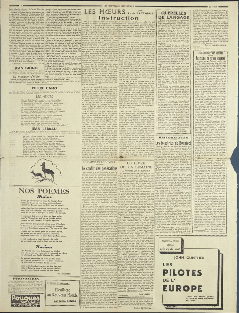 Απόκομμα της εφημερίδας “Les Nouvelles Litteraires”, στα γαλλικά, χαρτί, δύο όψεις.