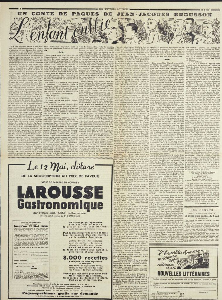 Απόκομμα της εφημερίδας “Les Nouvelles Litteraires”, στα γαλλικά, χαρτί, δύο όψεις.