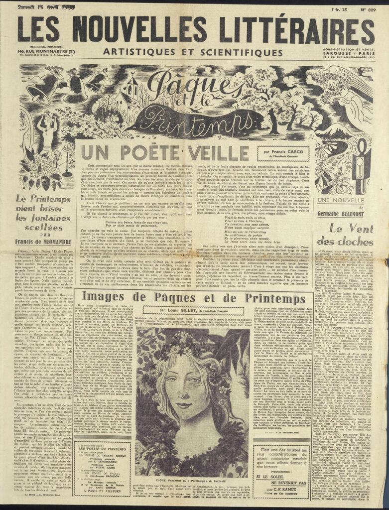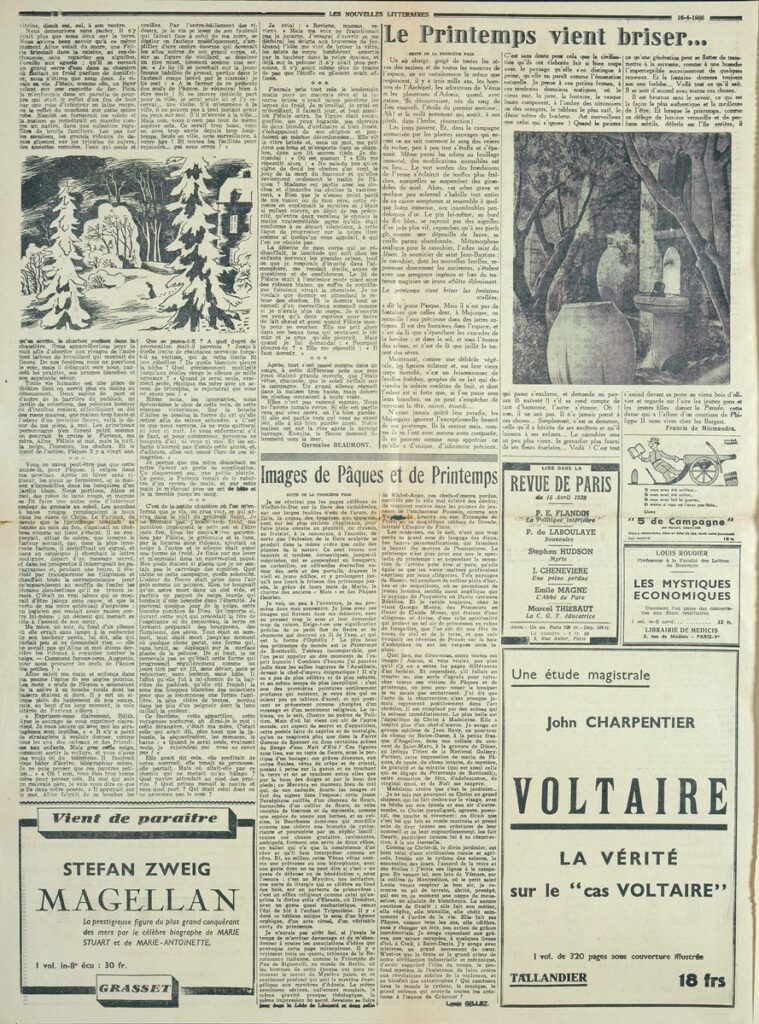 Απόκομμα της εφημερίδας “Les Nouvelles Litteraires”, στα γαλλικά, χαρτί, 4 όψεις.