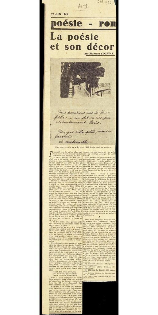 Απόκομμα της εφημερίδας “Arts”, στα γαλλικά, χαρτί, δύο όψεις.