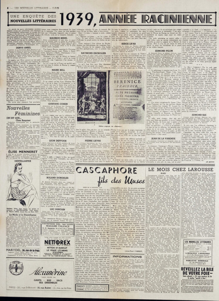 Απόκομμα της εφημερίδας “Les Nouvelles Litteraires”, στα γαλλικά, χαρτί, δύο όψεις.