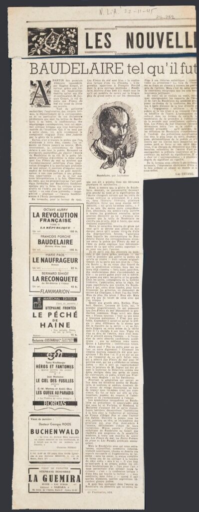 Απόκομμα της εφημερίδας “Les Nouvelles Litteraires”, στα γαλλικά, χαρτί, δύο όψεις. Στο ίδιο απόκομμα: “Le musée Rodin rouvre ses portes”.