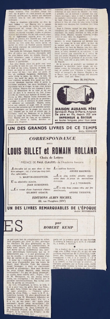 Απόκομμα της εφημερίδας “Les Nouvelles Litteraires”, στα γαλλικά, χαρτί, δύο όψεις.