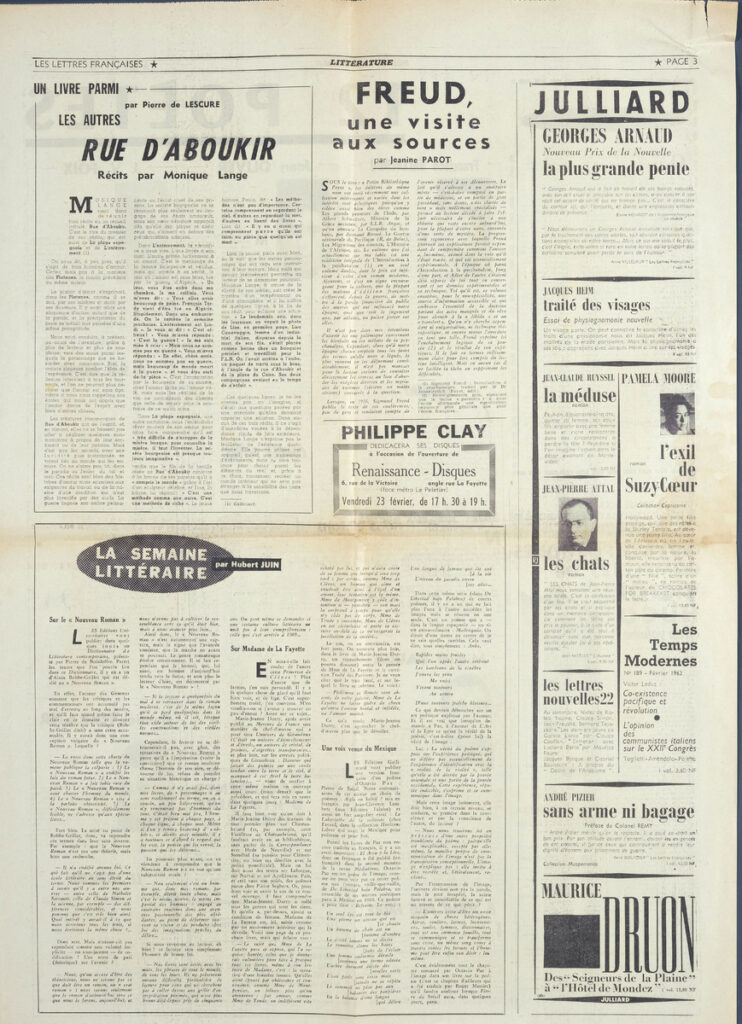 Απόκομμα της εφημερίδας “Les Lettres Françaises”, στα γαλλικά, χαρτί, 4 όψεις.