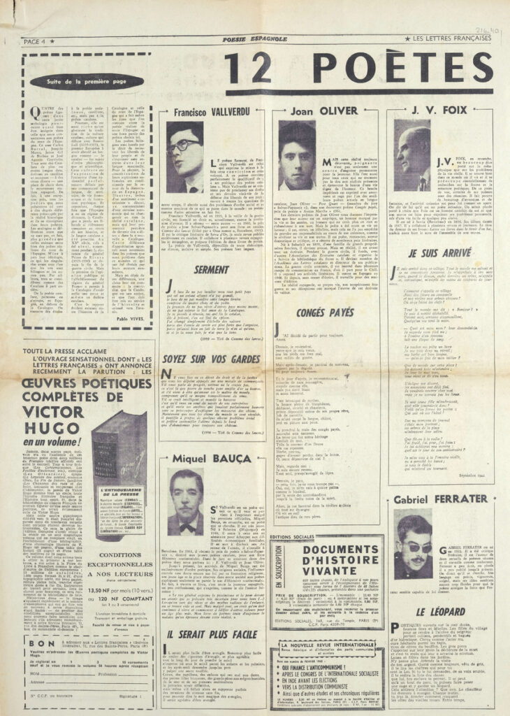 Απόκομμα της εφημερίδας “Les Lettres Françaises”, στα γαλλικά, χαρτί, 4 όψεις.