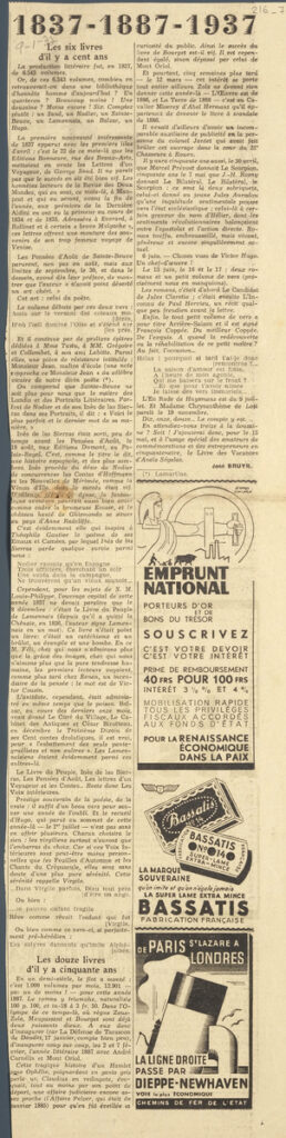 1837- 1887-1937 Les six livres d’ il y a cent ans