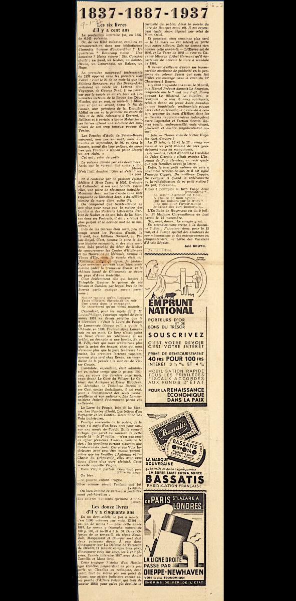 1837- 1887-1937 Les six livres d’ il y a cent ans