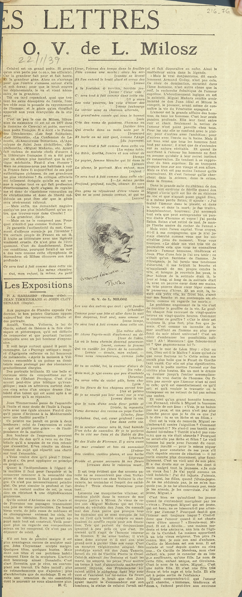 Απόκομμα περιοδικού ή ημερήσιου τύπου, στα γαλλικά, χαρτί, δύο όψεις.
