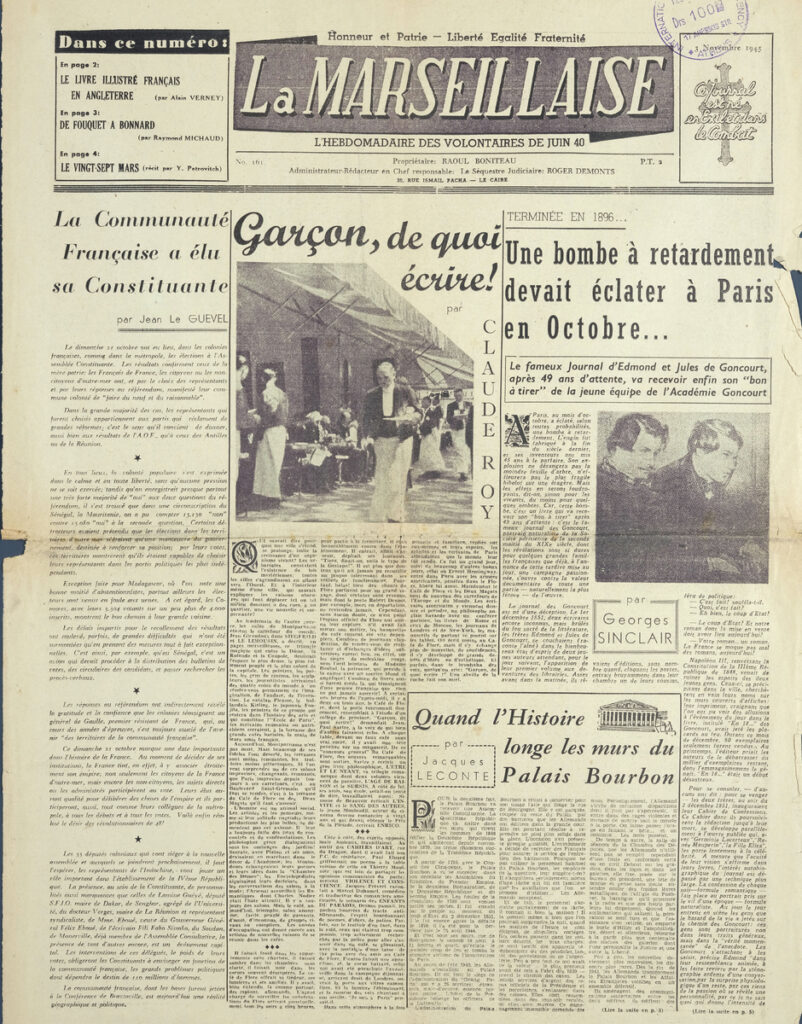 Απόκομμα εφημερίδας “Les Marseillaise”, στα γαλλικά, χαρτί, 4 όψεις.
