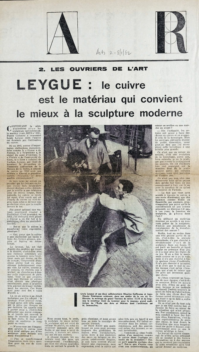 Απόκομμα του περιοδικού “Arts”, 02-08/01/1962, έντυπο, στα γαλλικά, χαρτί, διπλής όψης, 46×26 εκ. Το απόσπασμα εικονογραφείται. Πάνω από τον τίτλο, επιγραφή με τα στοιχεία έκδοσης.