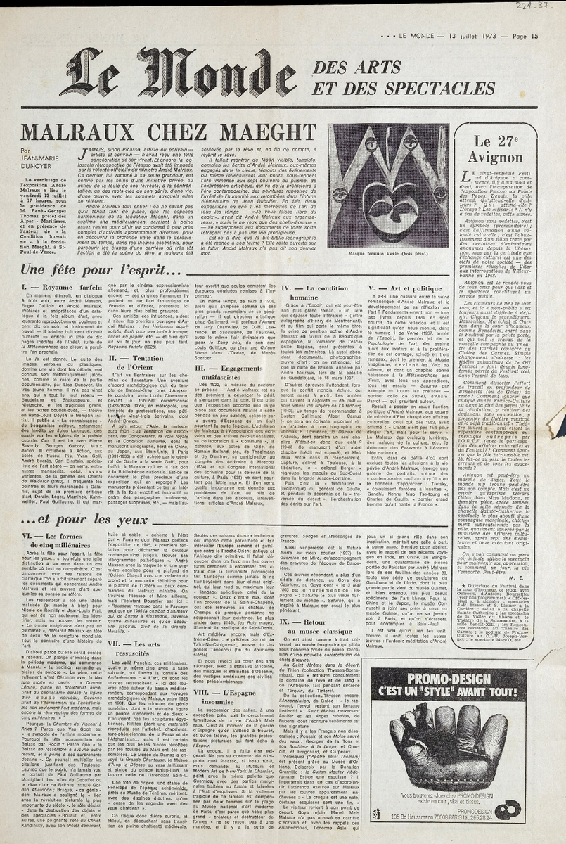 Απόκομμα, έντυπο, στα γαλλικά, χαρτί, διπλής όψης, 50×33,5 εκ., όπου δημοσιεύεται άρθρο του συγγραφέα και δημοσιογράφου J.-.M. Dunoyer. Το απόσπασμα εικονογραφείται. Πάνω δεξιά, επιγραφή, στα ελληνικά.