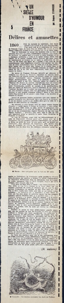 Απόκομμα, έντυπο, στα γαλλικά, χαρτί, διπλής όψης, 59×11 εκ., όπου δημοσιεύεται άρθρο αναφορικά με τους Γάλλους γελοιογράφους. Το απόσπασμα εικονογραφείται.