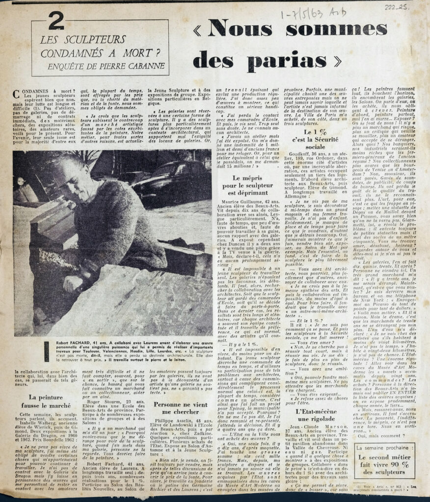Απόκομμα του περιοδικού “Arts”, 01-07/05/1963, έντυπο, στα γαλλικά, χαρτί, διπλής όψης, 35×31 εκ. Το απόσπασμα εικονογραφείται. Πάνω από τον τίτλο, επιγραφή με τα στοιχεία έκδοσης.