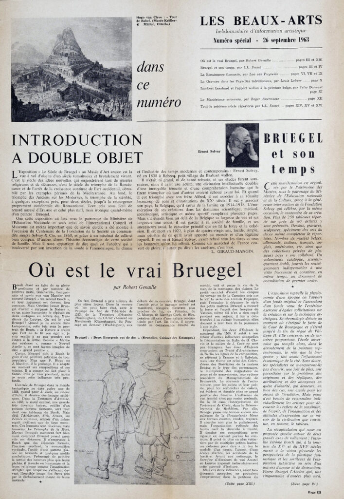 Απόκομμα του περιοδικού “Les Beaux-Arts”, έντυπο, στα γαλλικά, χαρτί, οκτώ φύλλα διπλής όψης, 46,55×32 εκ. Ειδική έκδοση του περιοδικού, σχετικά με έκθεση φλαμανδικής τέχνης στο Musée des Beaux-Arts στο Βέλγιο, από τις 27/09 έως τις 24/11/1963. Το απόσπασμα εικονογραφείται.