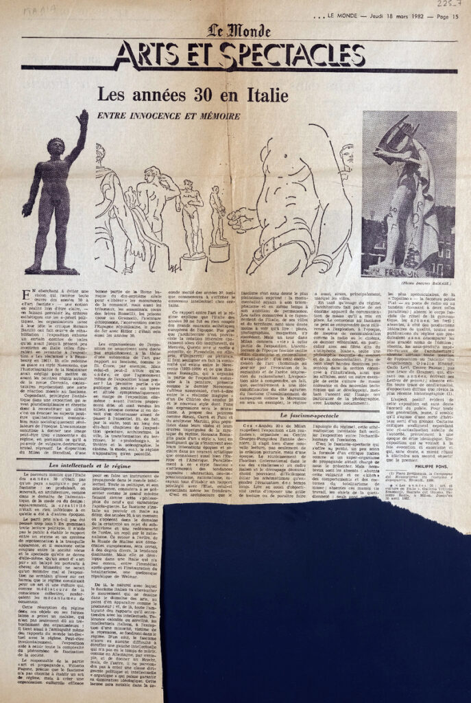 Απόκομμα της εφημερίδας “Le Monde”, έντυπο, στα γαλλικά, χαρτί, διπλής όψης, 50×33 εκ., όπου δημοσιεύεται άρθρο του Γάλλου ιστορικού και δημοσιογράφου Ph. Pons. Το απόσπασμα εικονογραφείται. Πάνω αριστερά, επιγραφή, στα ελληνικά.