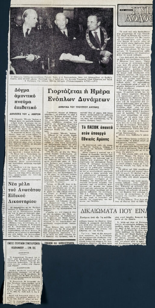 Απόκομμα της εφημερίδας “Το Βήμα” (29/08/1979).