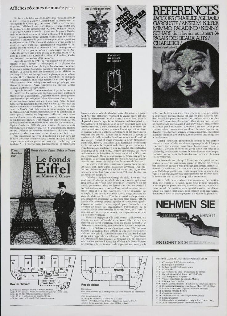 Έντυπο, στα γαλλικά, δίφυλλο (4 όψεις), χαρτί ιλουστρασιόν, 44,5×32 εκ., έκθεσης επιλεγμένων έργων από τη συλλογή του Μουσείου του Λούβρου. Η έκθεση διοργανώθηκε στο Παρίσι το 1985.