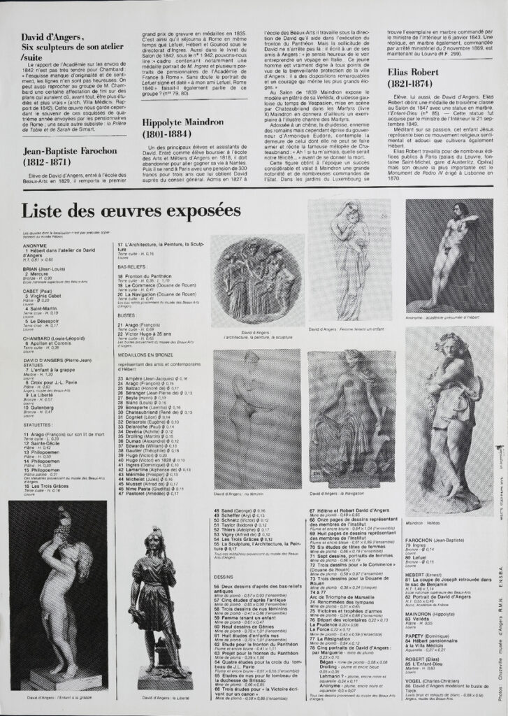Έντυπο, στα γαλλικά, δίφυλλο (4 σελίδες), χαρτί, 46×33 εκ., έκθεσης αφιερωμένης στο έργο του Γάλλου νεοκλασικιστή γλύπτη David d’Angers, που πραγματοποιήθηκε στο Παρίσι το 1980.