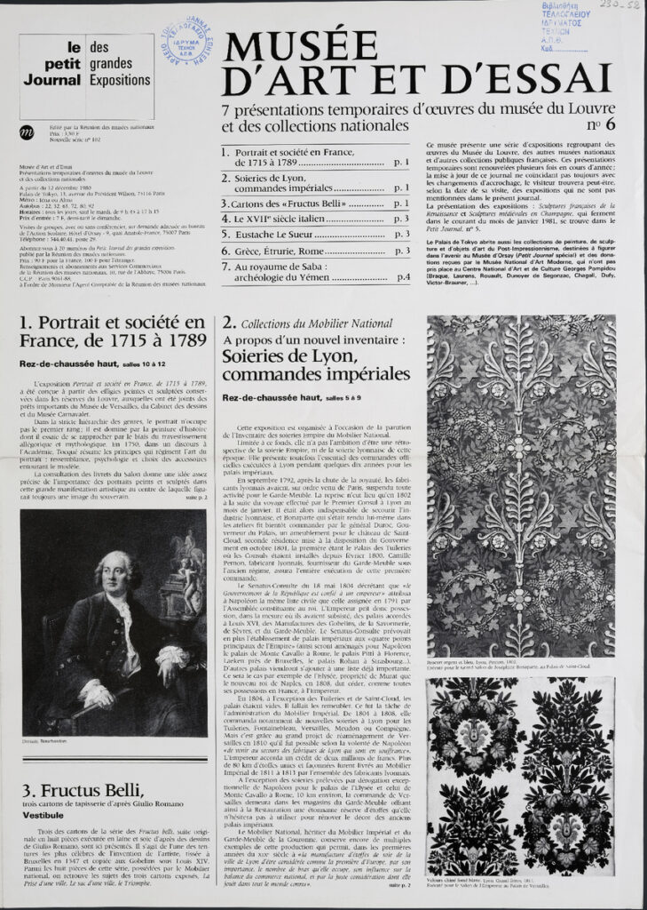 Έκθεση “Musée d’ art et d’ essai. 7 présentations temporaines d’ oeuvres du musée du Louvre et des collections nationales, no. 6”