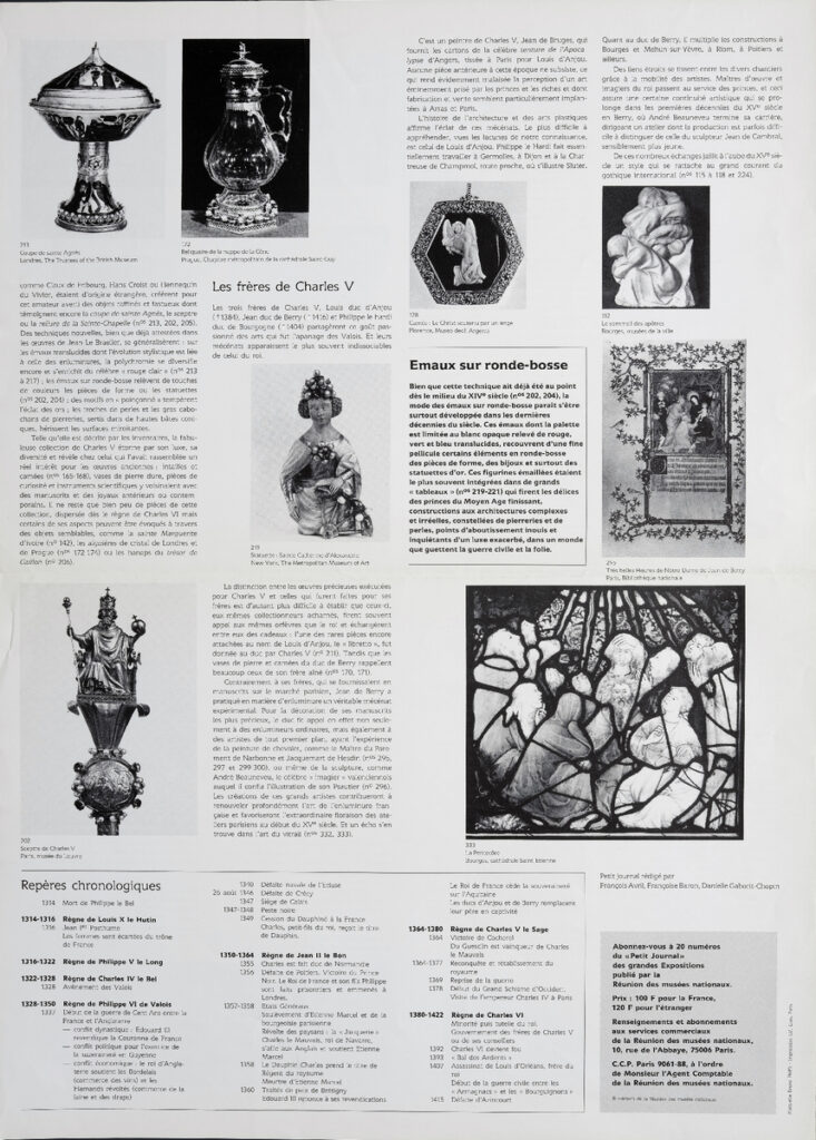 Έντυπο, στα γαλλικά, δίφυλλο (4 σελίδες), χαρτί ιλουστρασιόν, 46×33 εκ., έκθεσης αφιερωμένης στη γοτθική τέχνη του α’ μισού του 16ου αιώνα, που πραγματοποιήθηκε στο Παρίσι το 1981.