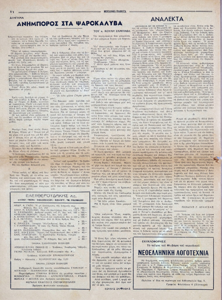 «Νεοελληνικά Γράμματα», περίοδος Β’, φύλλο 166