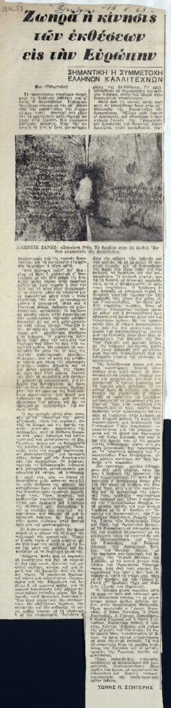 Απόκομμα, χαρτί επικολλημένο σε λευκή κόλλα, 29×21 εκ., στα ελληνικά. Δημοσίευση συνέχειας άρθρου του Τώνη Σπητέρη, στο οποίο αναφέρεται στην Ε’ Μπιεννάλε Χαρακτικής της Λιουμπλιάνα. Σχολιάζει τη διοργάνωση της έκθεσης και τους συμμετέχοντες καλλιτέχνες,