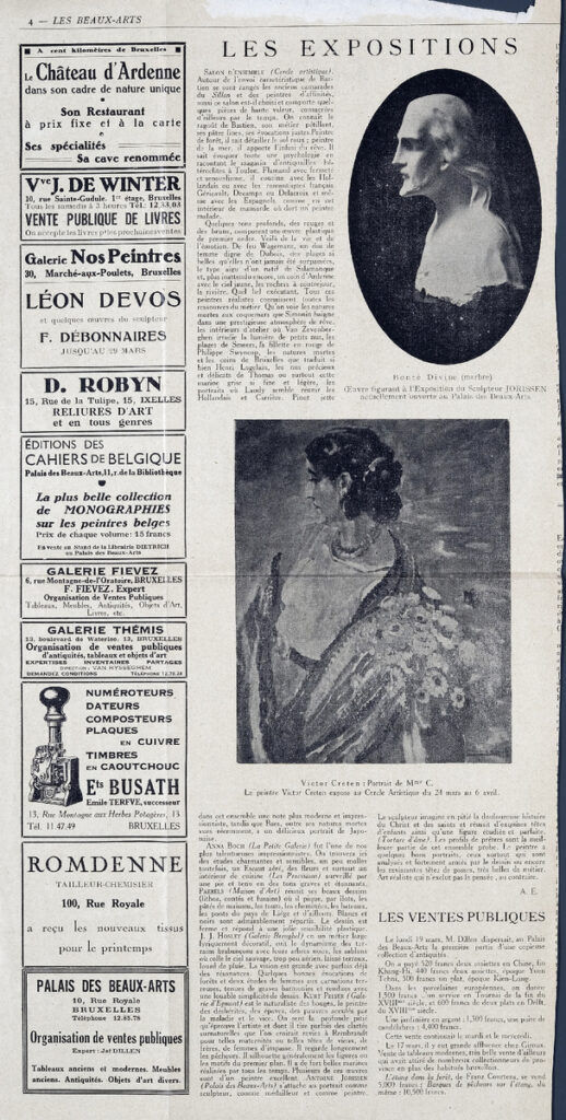 Απόκομμα του περιοδικού “Les Beaux-Arts”, έντυπο, στα γαλλικά, χαρτί, διπλής όψης, 60×43 εκ., όπου δημοσιεύεται άρθρο του A. Stubbe για το Μπαρόκ στην τέχνη και την μοντέρνα τέχνη. Το απόσπασμα εικονογραφείται. Αριστερά από τον τίτλο, επιγραφή με τα στοιχεία έκδοσης. Στο ίδιο απόκομμα: A. E. “Les expositions”.