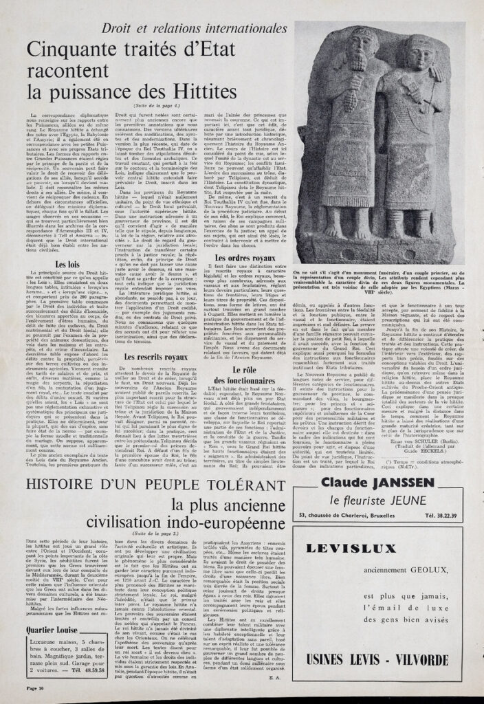 Απόκομμα του περιοδικού “Les Beaux Arts”, έντυπο, στα γαλλικά, χαρτί, τρία φύλλα διπλής όψης, 46,5×32 εκ., όπου δημοσιεύεται άρθρο για τον πολιτισμό των Χετταίων, με αφορμή έκθεση στο Palais des Beaux-Arts το 1963. Το απόσπασμα εικονογραφείται.