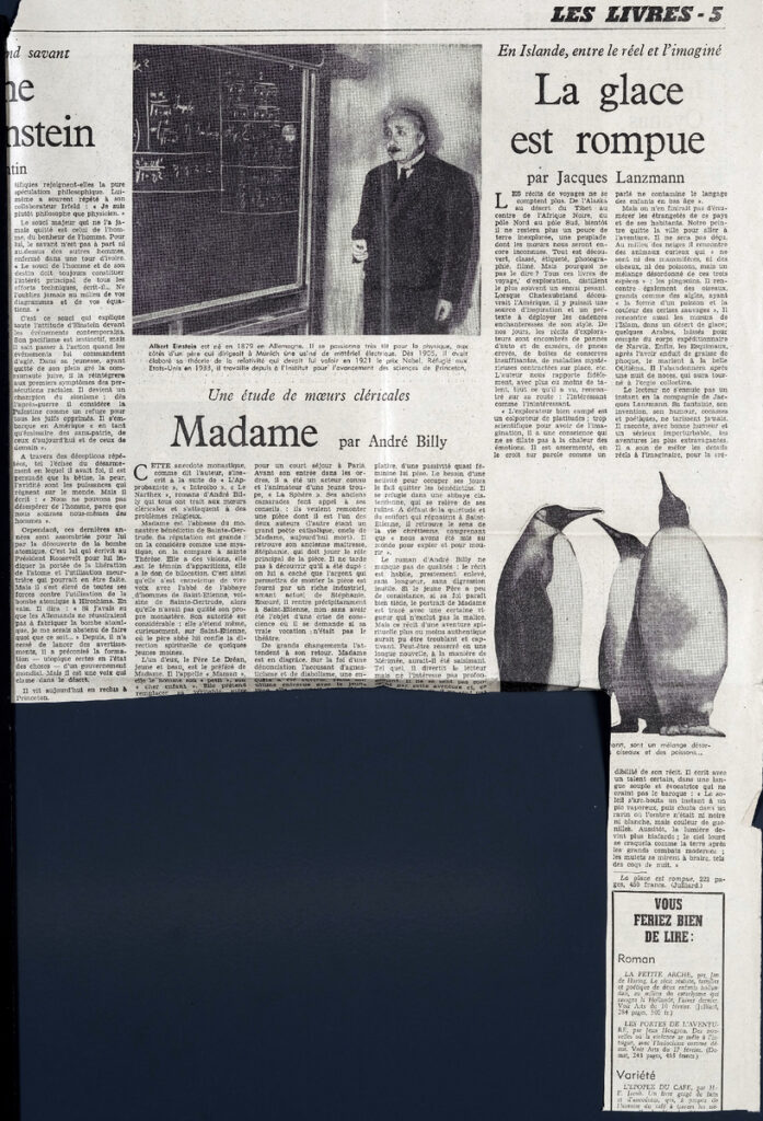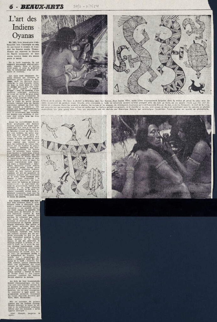 Απόκομμα, έντυπο, 24/02-02/03/1954, στα γαλλικά, χαρτί, διπλής όψης, 60×42,5 εκ. Το απόσπασμα εικονογραφείται. Πάνω από τον τίτλο, επιγραφή με τα στοιχεία έκδοσης.