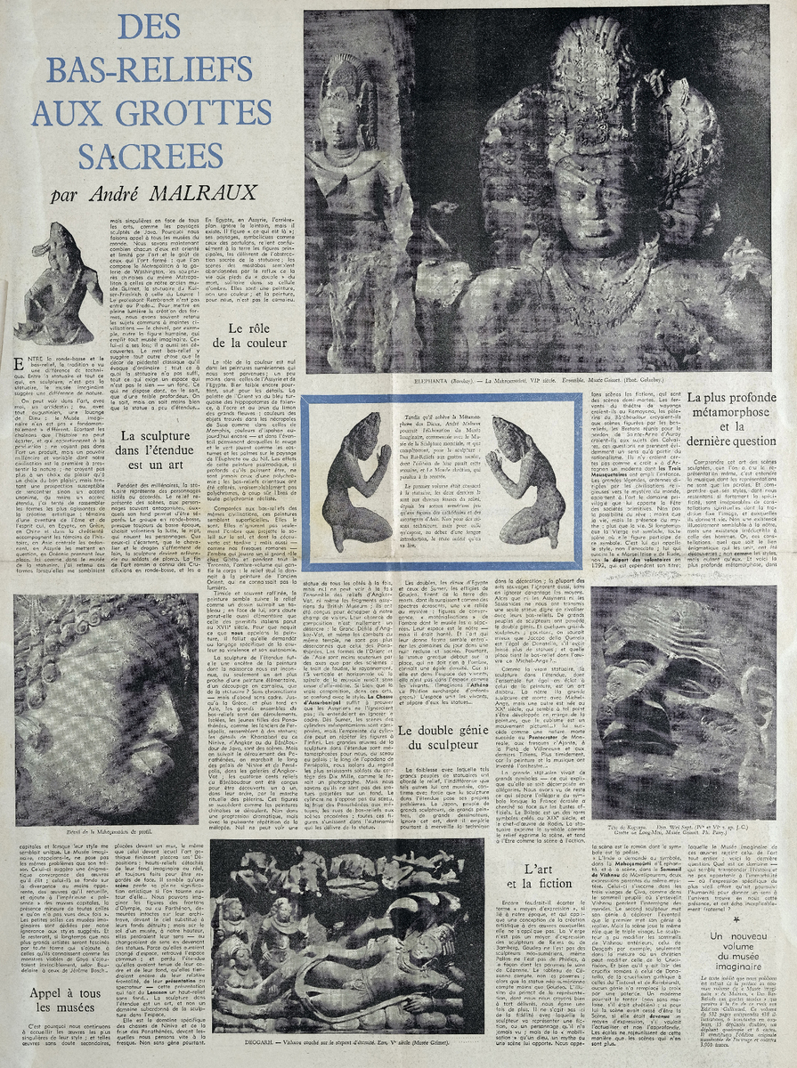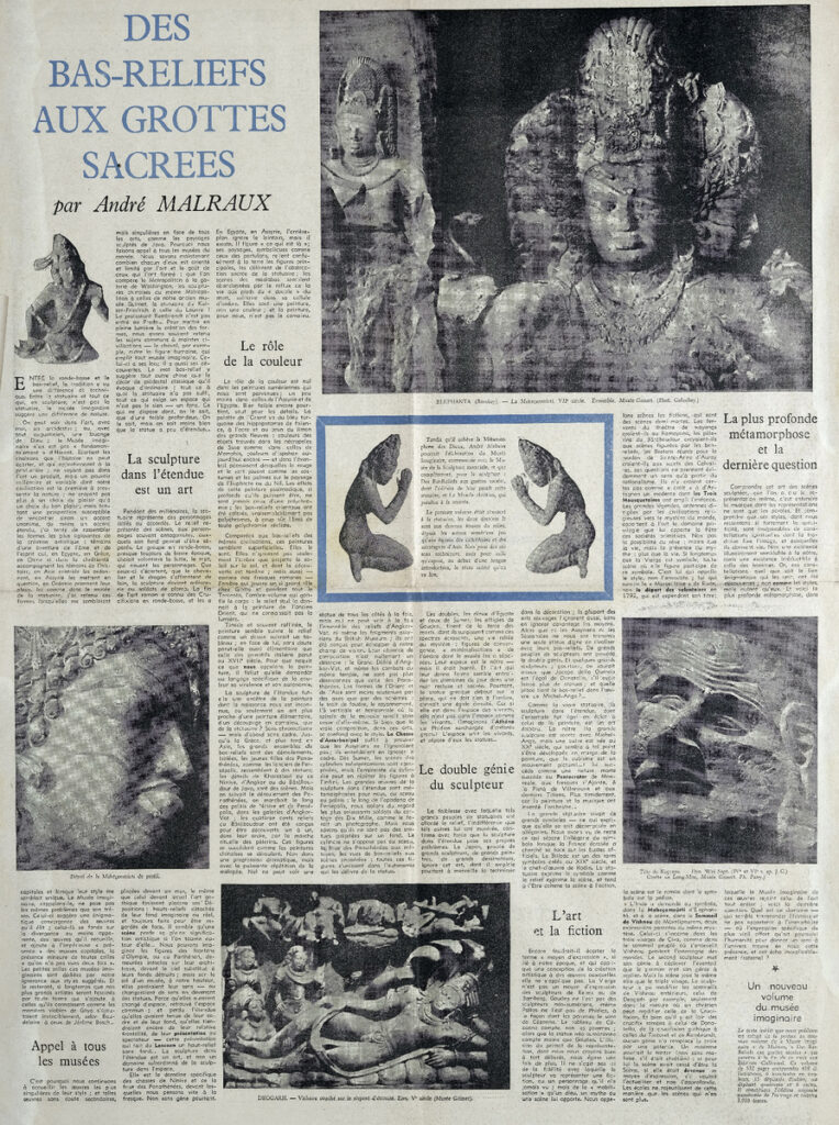 Απόκομμα, 19-25/05/1954, έντυπο, στα γαλλικά, χαρτί, διπλής όψης, 59,5×43 εκ., όπου δημοσιεύεται άρθρο του Γάλλου κριτικού τέχνης A. Malraux. Το απόσπασμα εικονογραφείται.