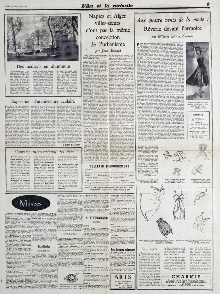 Απόκομμα του περιοδικού “Arts”, 09-15/01/1953, έντυπο, στα γαλλικά, χαρτί, διπλής όψης, 59×42,5 εκ., όπου δημοσιεύεται άρθρο για την Ανγκόρ στην Καμπότζη. Το απόσπασμα εικονογραφείται.