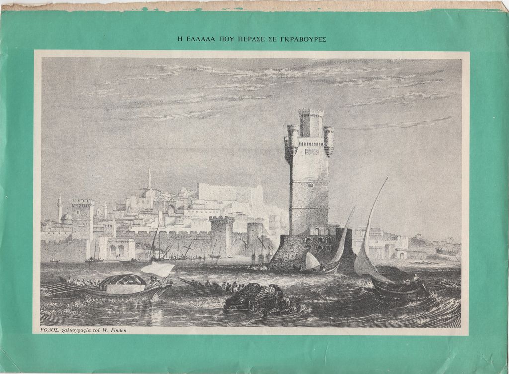 Απόκομμα, χαρτί, 24,5 x 33 εκ., με α/μ αναπαραγωγή έργου με τοπίο της Ρόδου. Πρόκειται για αφιέρωμα της Πειραϊκής Πατραϊκής: “Η Ελλάδα που πέρασε σε γκραβούρες”.