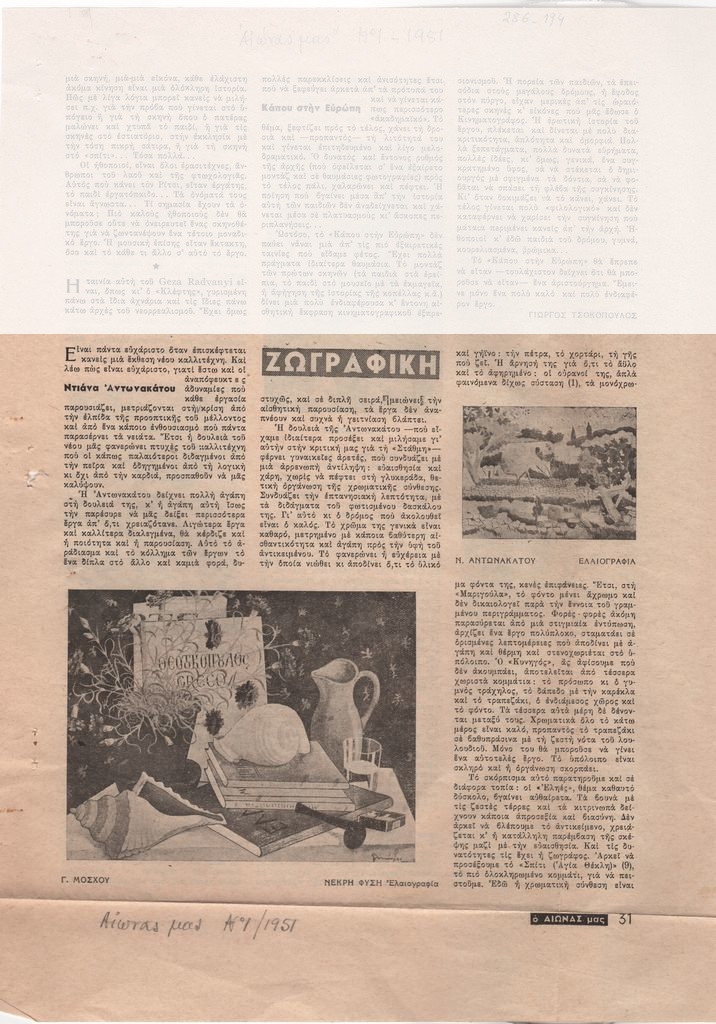 Απόκομμα περιοδικού, χαρτί, 31,5×23 εκ., στα ελληνικά.