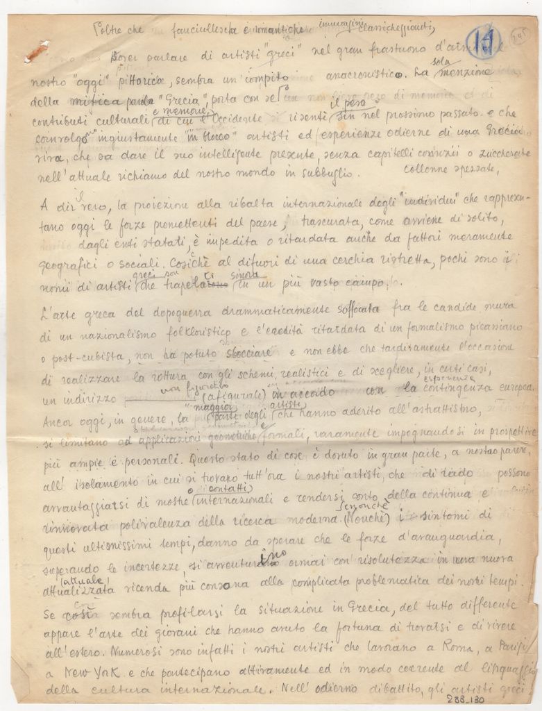 Προσχέδιο ομιλίας του Τώνη Σπητέρη, χαρτί, 4 φφ, 27×21 εκ., στα ιταλικά.