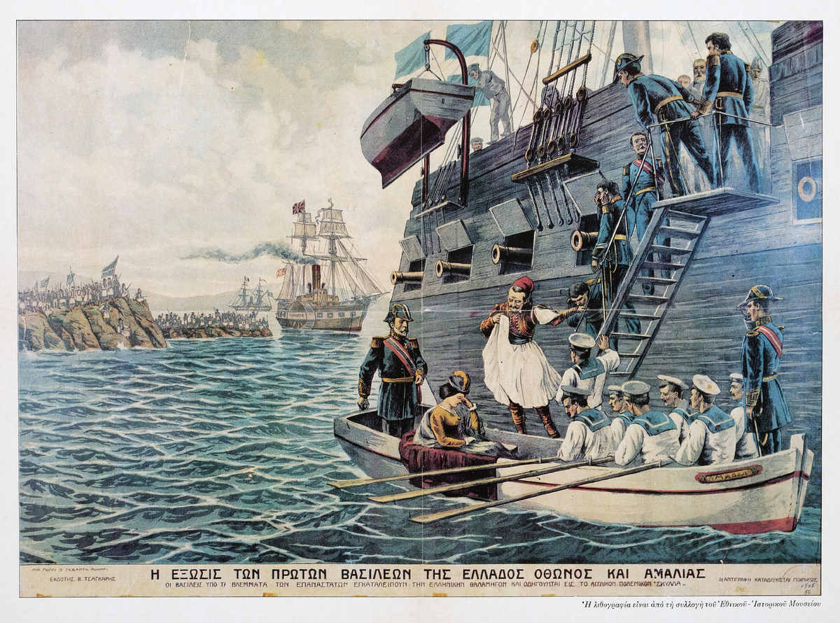 Έκδοση λιθογραφίας με θέμα την έξωση του Όθωνα και της Αμαλίας στις 23/10/1862, από τη Συλλογή του Εθνικού-Ιστορικού Μουσείου.