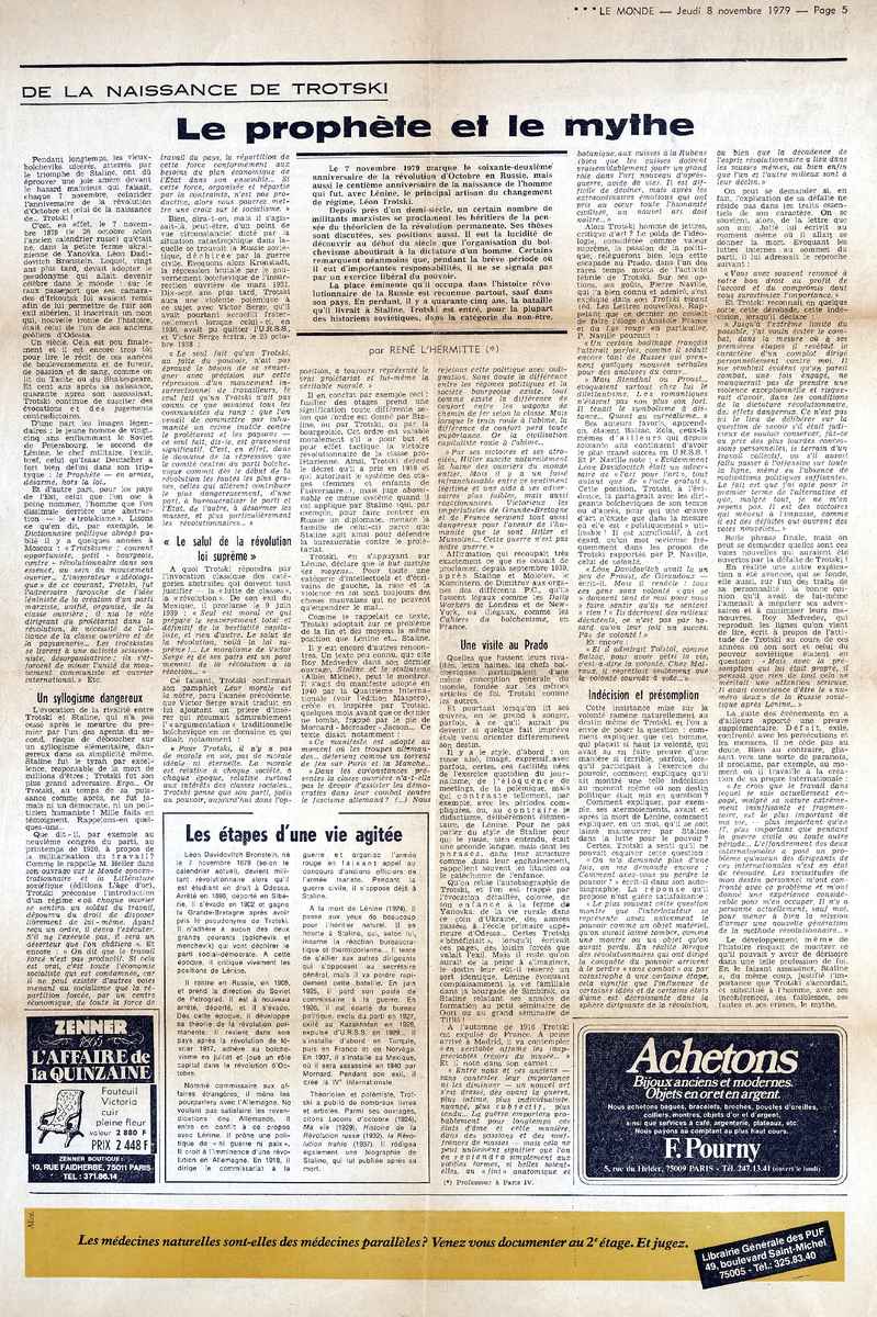 Rene L Hermitte, De la naissance de Trotski. Le prophete et le mythe, LE MONDE, 08/11/1979.