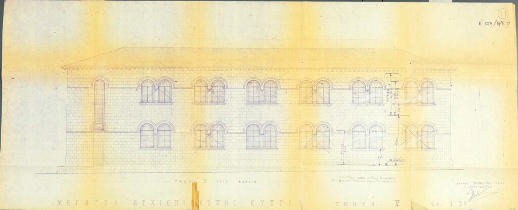 Σχέδιο πρόσοψης του Μεγάρου Αρχιεπισκοπής της Κύπρου