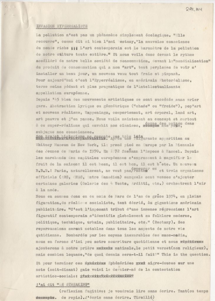 Δακτυλόγραφο κείμενο του Τώνη Σπητέρη, χαρτί, 2 φφ, 30×21 εκ., στα γαλλικά. Αναφέρεται στον υπερρεαλισμό.