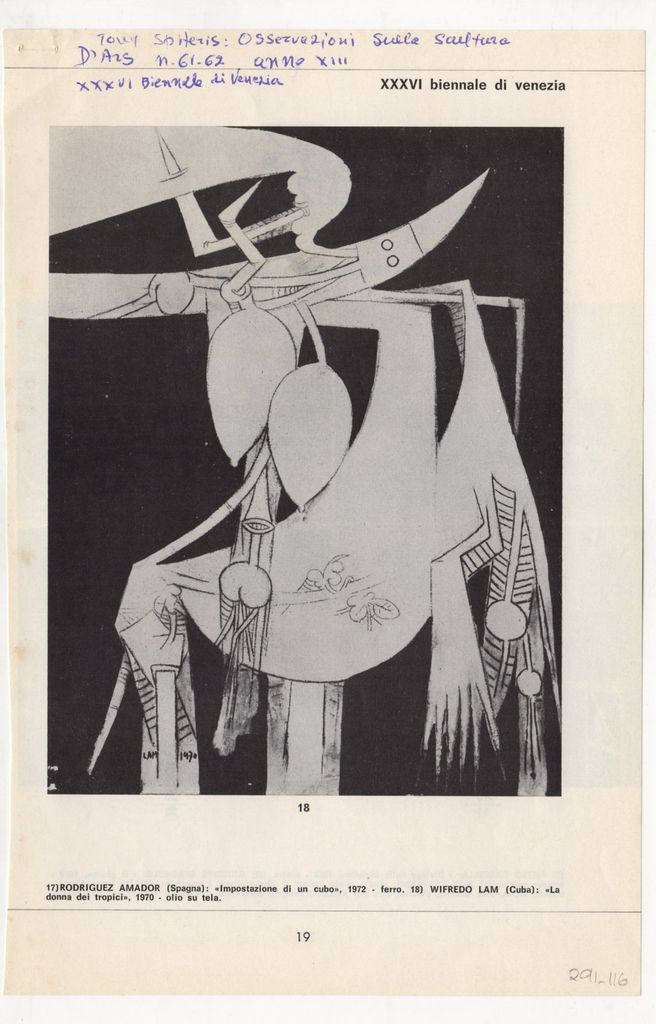 Απόκομμα, χαρτί, 8 φφ, 24×16 εκ., στα ιταλικά. Δημοσίευση άρθρου του Τώνη Σπητέρη, στο οποίο μεταφέρει σκέψεις και σημειώσεις του για την γλυπτική, με αφορμή τα έργα που εκτίθενται στην 36η Μπιενάλε Βενετίας 1972.