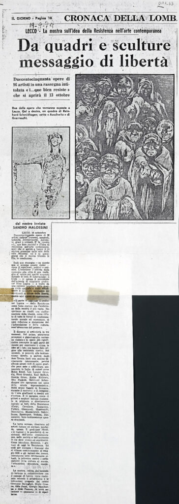 Φωτοαντίγραφο, χαρτί ακανόνιστου μεγέθους, στα ιταλικά. Δημοσίευση άρθρου το οποίο αναφέρεται σε έκθεση με θέμα την Αντίσταση, η οποία διεξάγεται στο Lecco της Ιταλίας. Δίνονται λεπτομέρειες σχετικά με το περιεχόμενο και την διοργάνωση της έκθεσης.