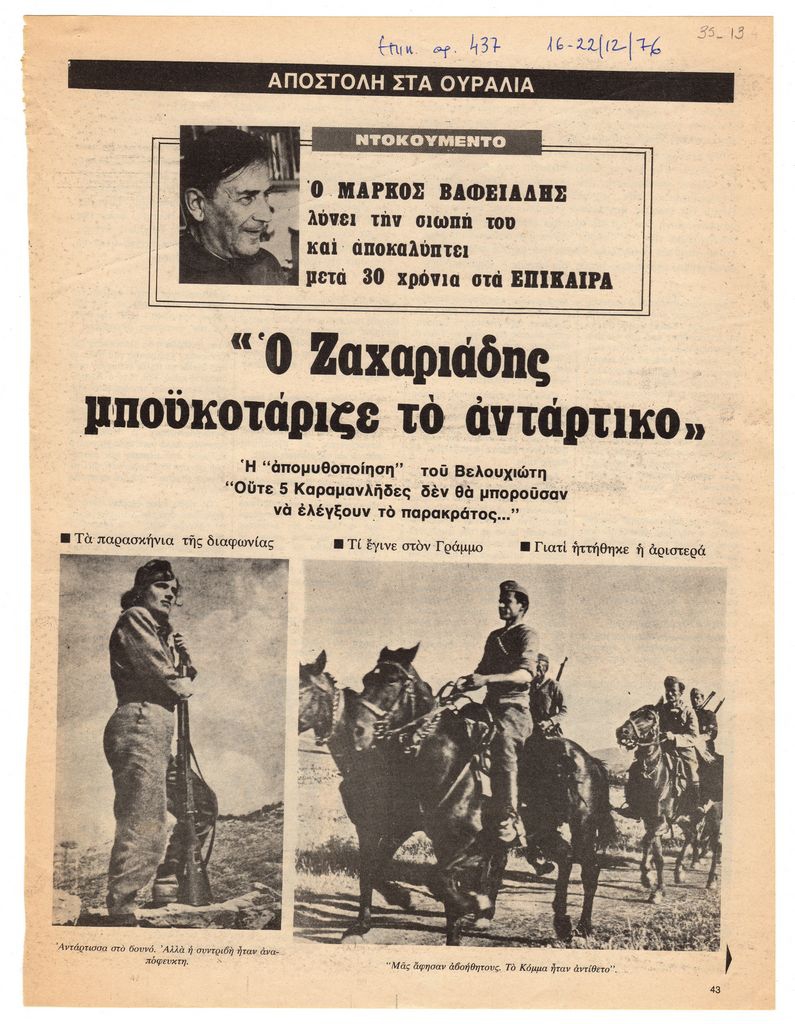 «Ο Ζαχαριάδης μποϋκοτάριζε το αντάρτικο»