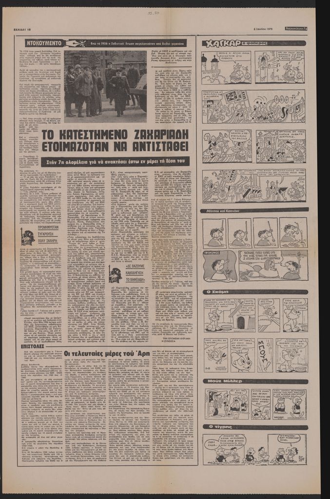 Απόκομμα, έντυπο, στα ελληνικά, χαρτί, διπλής όψης, 63×43 εκ. Στο ίδιο απόκομμα: Γιάννης Μπατής “Επιστολές: Οι τελευταίες μέρες του Άρη”, πολιτική επικαιρότητα, διαφημίσεις και κόμικ.