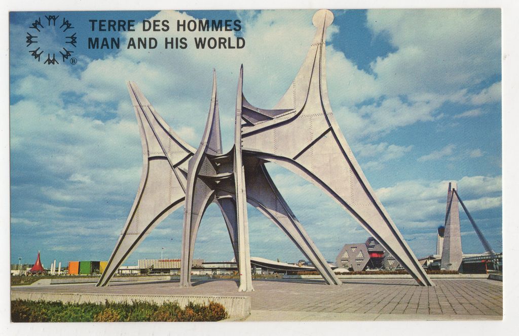 Ταχυδρομική κάρτα, χαρτόνι, 9×14 εκ. Αναπαραγωγή φωτογραφίας, έγχρωμη, έργου του Alexander Calder, το οποίο παρουσιάστηκε στην Expo 1967 στον Καναδά.