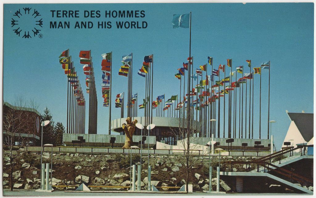 Ταχυδρομική κάρτα, χαρτόνι, 9×14 εκ. Αναπαραγωγή φωτογραφίας, έγχρωμη, χώρου στον οποίο διεξάγεται θεματική έκθεση γραμματοσήμων, κατά τη διάρκεια της έκθεσης ‘Terre des Hommes’/ ‘Man and his world’/ Expo 1967 στον Καναδά.