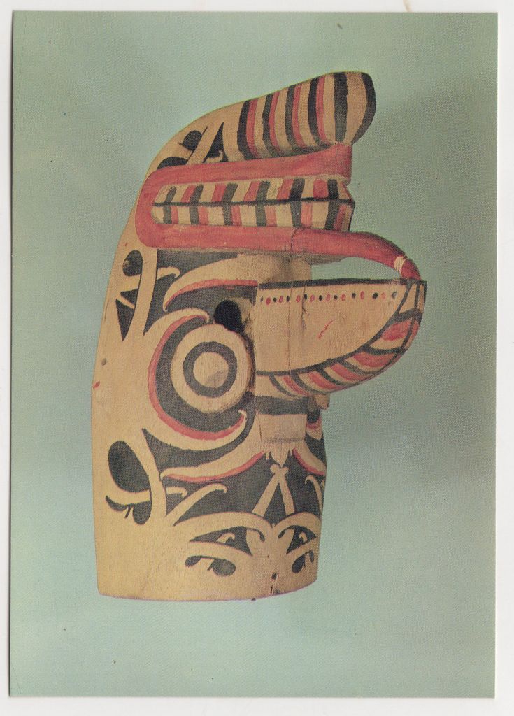 Ταχυδρομική κάρτα, χαρτόνι, 10.5×15 εκ.. Διακρίνεται ινδονησιακή μάσκα η οποία εκτίθεται στο μουσείο Azji i Pacyfiku της Βαρσοβίας.