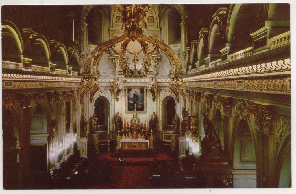 Ταχυδρομική κάρτα, χαρτόνι, 10.5×15 εκ. Αναπαραγωγή φωτογραφίας, έγχρωμη, του εσωτερικού χώρου της Βασιλικής του Κεμπέκ στον Καναδά.