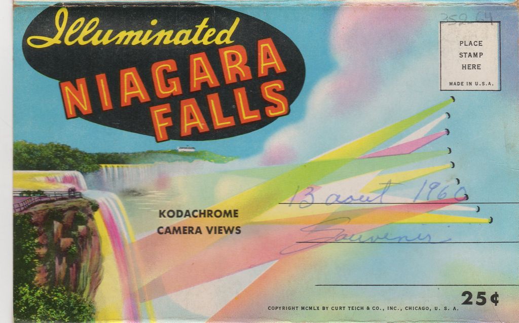 Άλμπουμ καρτών, χαρτόνι, 10×15 εκ.. Περιέχει αναπαραγωγές φωτογραφιών του καταρράκτη Νιαγάρα με διαφορετικούς τρόπους φωτισμού.